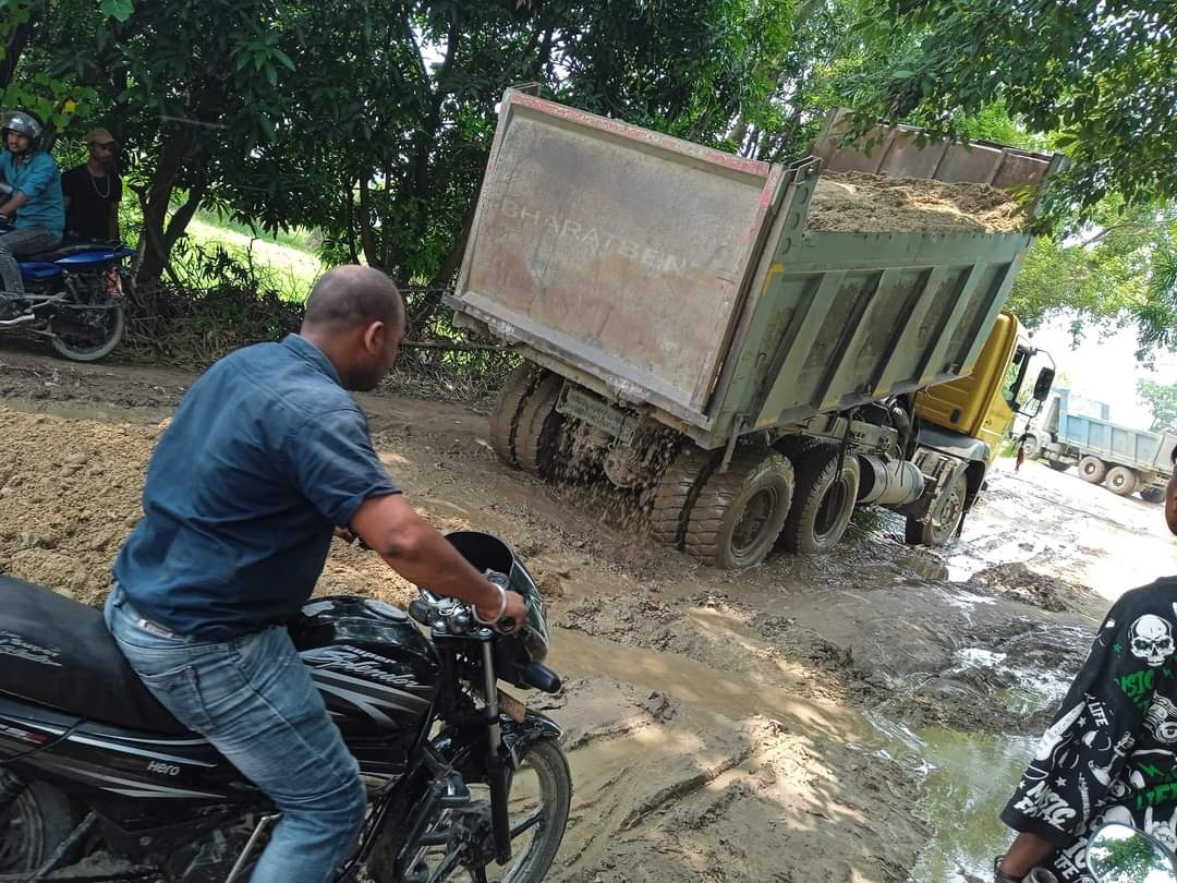 The road from Kachandaha to Sakhuwa of Shambhunath Municipality is being repaired.